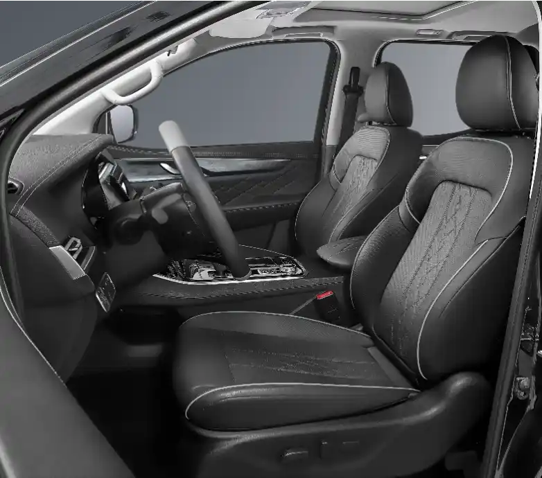 Interior tipo cuero + controles al volante + pantalla táctil de 13″ + volante ajustable + entrada sin llave + botón de arranque